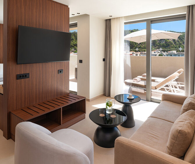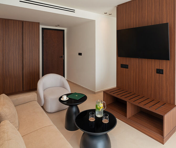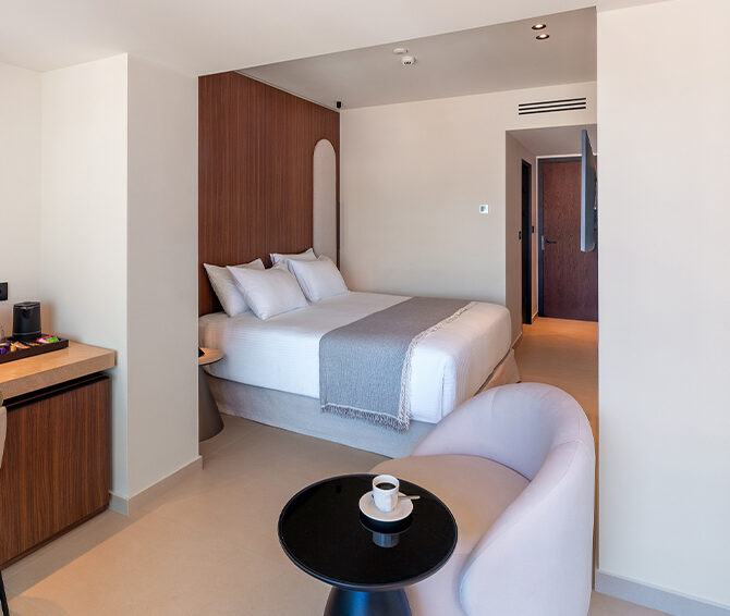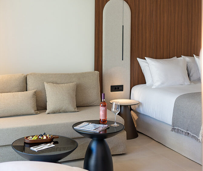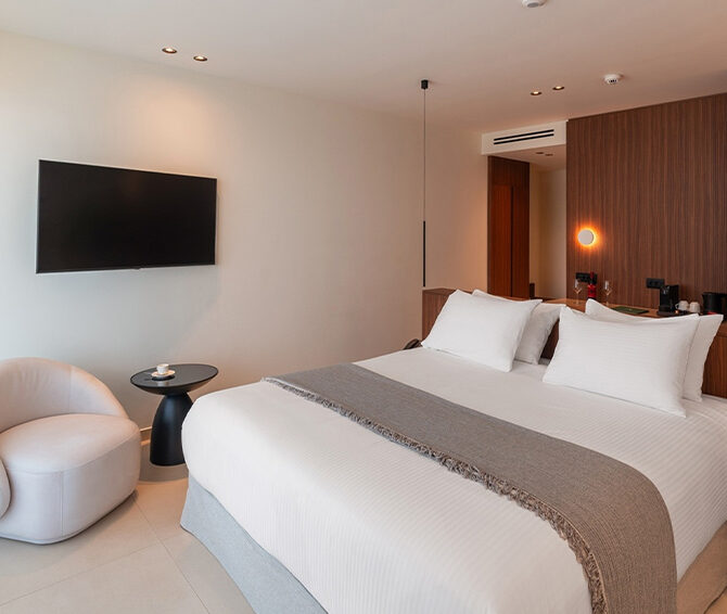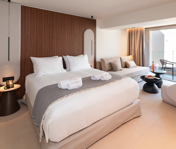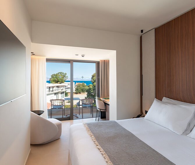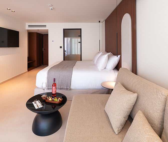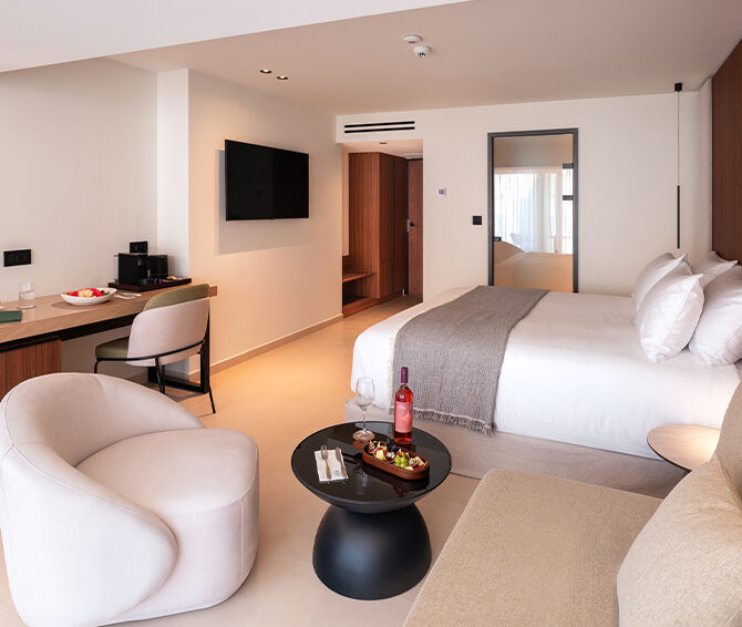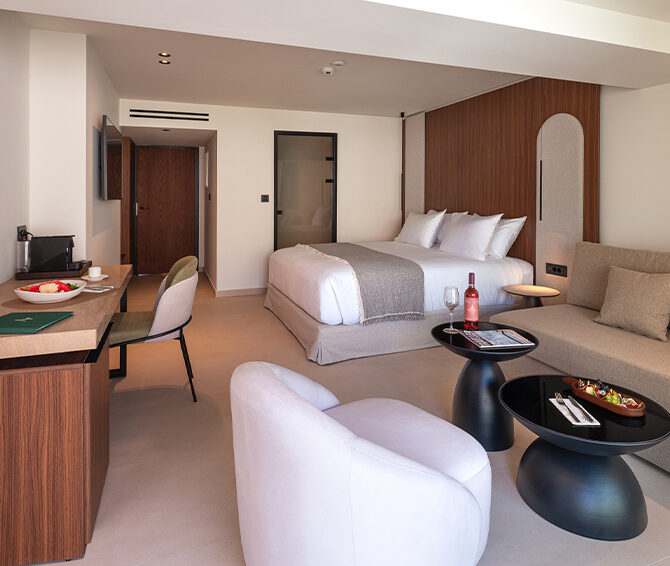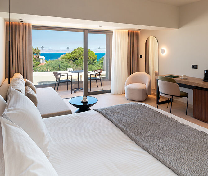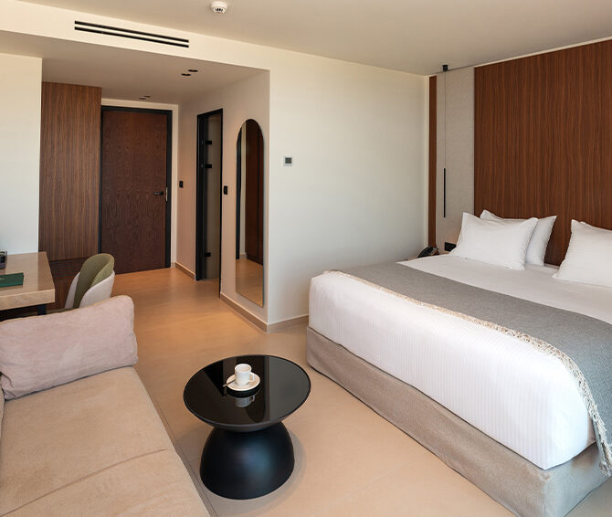 With sweeping views of the endless sea and the island’s breathtaking sunset, the Deluxe rooms with sea views offer an unparalleled stay experience.