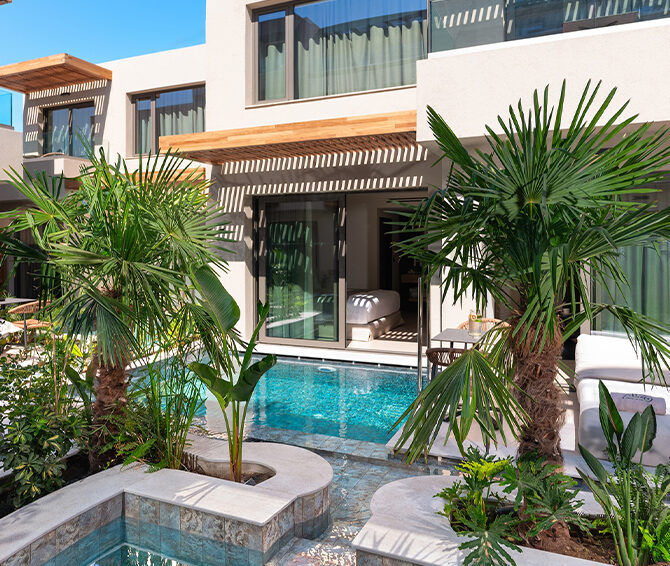 Luxury Suite with Heated Swim Up Pool is located on the ground floor of building B and is designed to offer a high level of comfort and privacy.