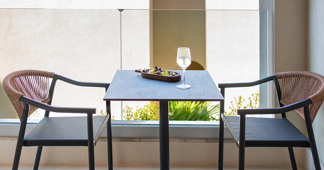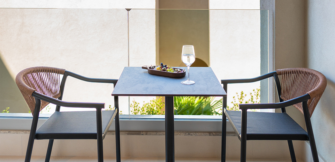 The room features a king-size bed or two twin beds with high-quality mattresses and luxurious linens, ensuring unparalleled comfort for a restful night’s sleep. The modern bathroom includes a walk-in shower and upscale bathroom amenities. Complimentary Wi-Fi, a Nespresso coffee machine, a kettle, a coffee set, plush bathrobes and slippers, create an environment of ultimate relaxation. With a furnished private balcony, to enjoy your morning coffee or a glass of wine in the evening, while gazing at the serene internal view or the hotel’s garden.