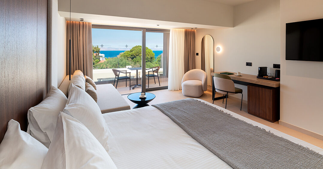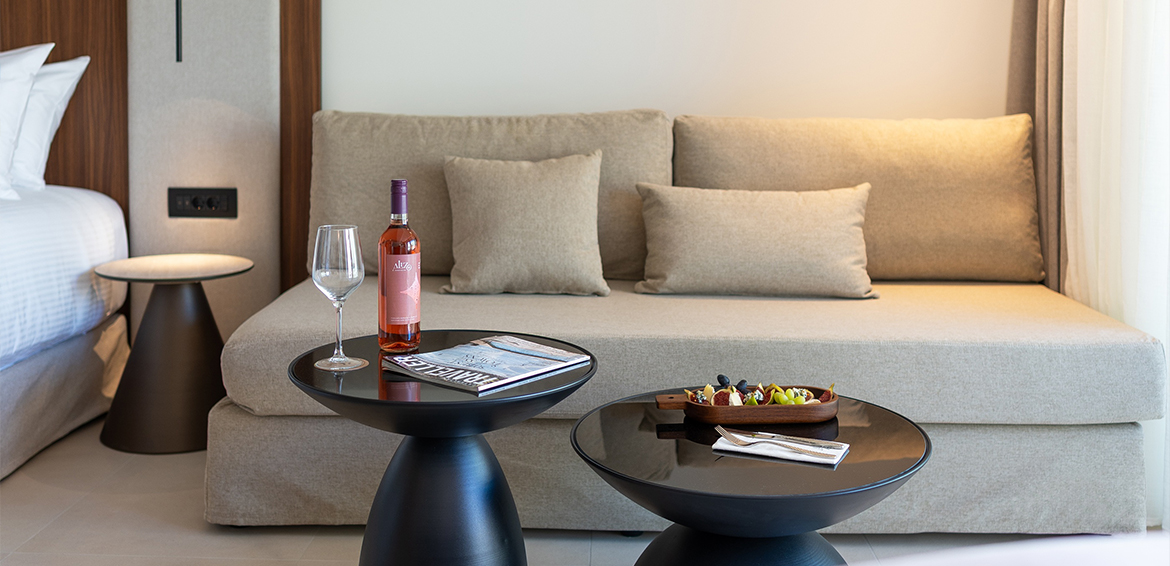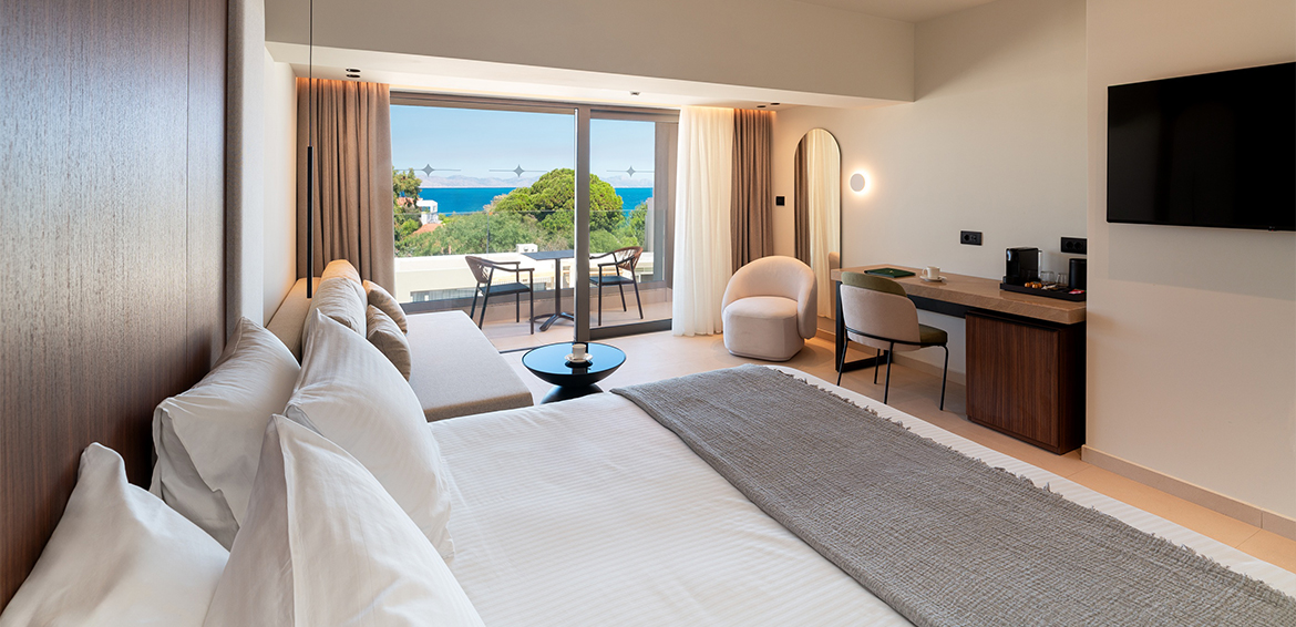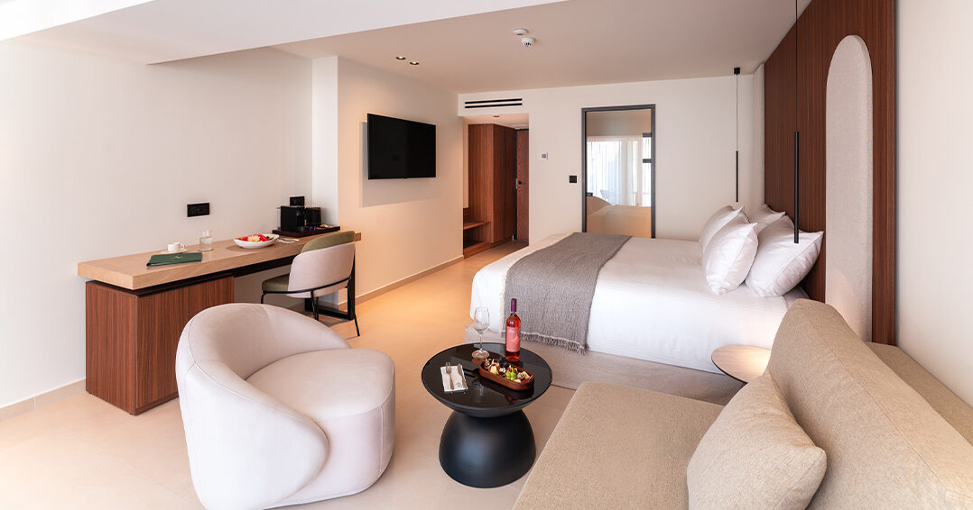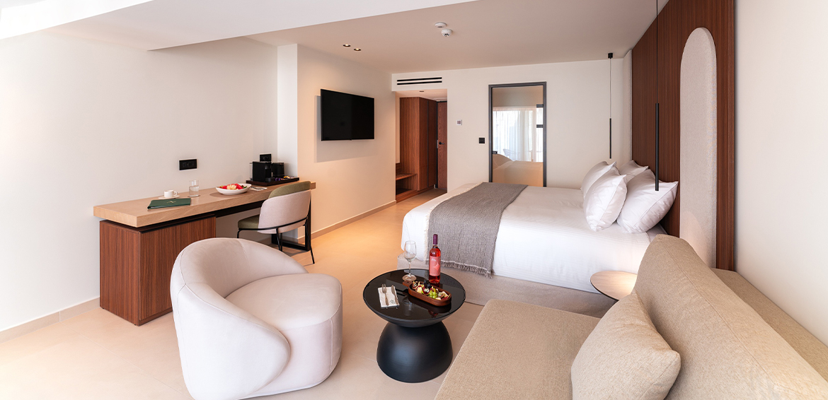 The Deluxe rooms are the perfect choice for those seeking to unwind in a space that exudes elegance, comfort and effortless luxury, while enjoying the captivating view of the endless blue and the enchanting hues of the sky as the sun dips in the horizon.