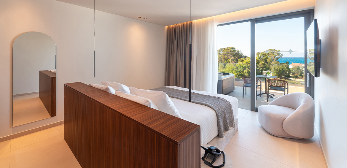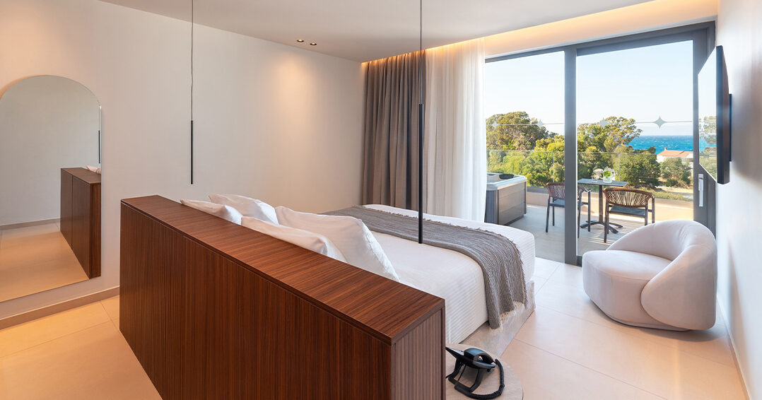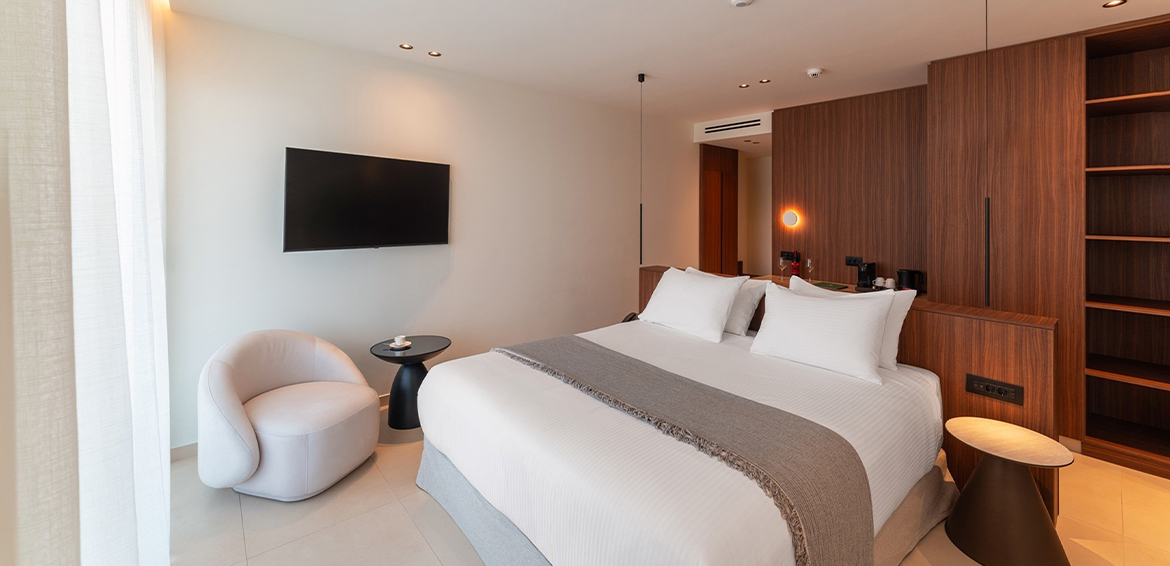 Located on the 4th and highest floor of the hotel’s main building, the Executive rooms redefine the concept of comfort and luxury with unparalleled sea views. These rooms offer unique hospitality experience, blending sophisticated design, modern amenities and panoramic views of the Aegean Sea.