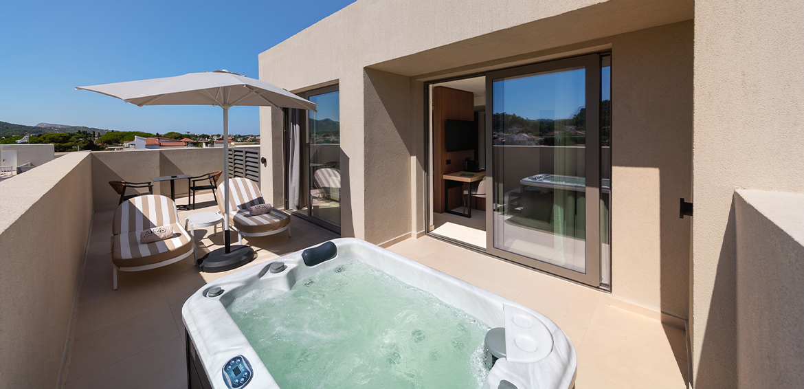 The private jacuzzi invites you to indulge in moments of pure well-being—whether unwinding after a day of exploration or simply soaking in the tranquility of the landscape.