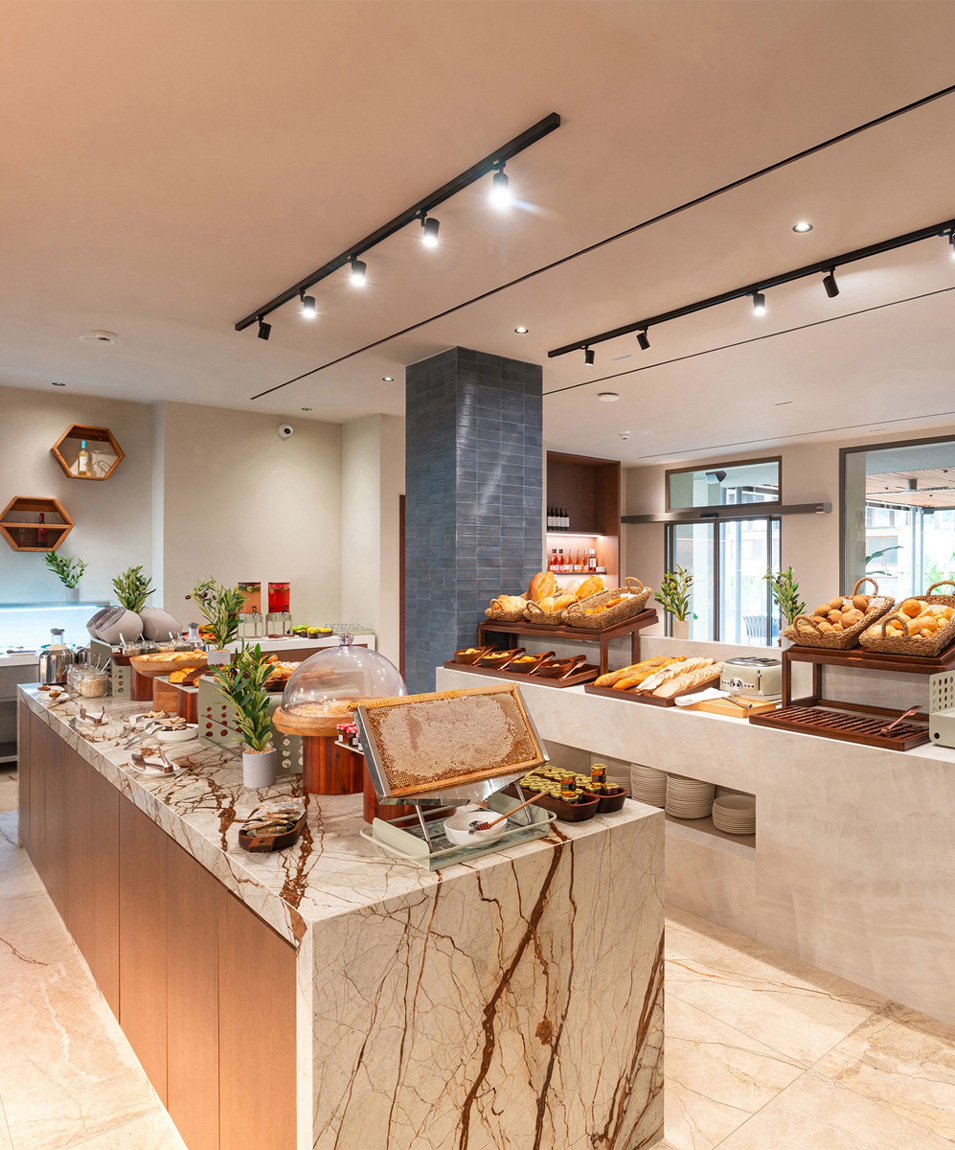 The restaurant’s show-cooking offers a unique breakfast experience that blends flavor, freshness and the vibrant atmosphere of an open kitchen. From 07:00 to 11:00, the sumptuous American Breakfast Buffet is filled with a variety of delectable options to start your day with energy and enjoyment.